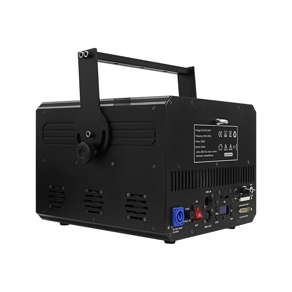 10W laser RGB es una luminaria iluminación LED de la marca LUMEN LED para uso escénico profesional. Potencia: 10W. Voltaje: AC100-240V 50/60Hz. Efectos especiales láser para espectáculos Uso: Exteriores.