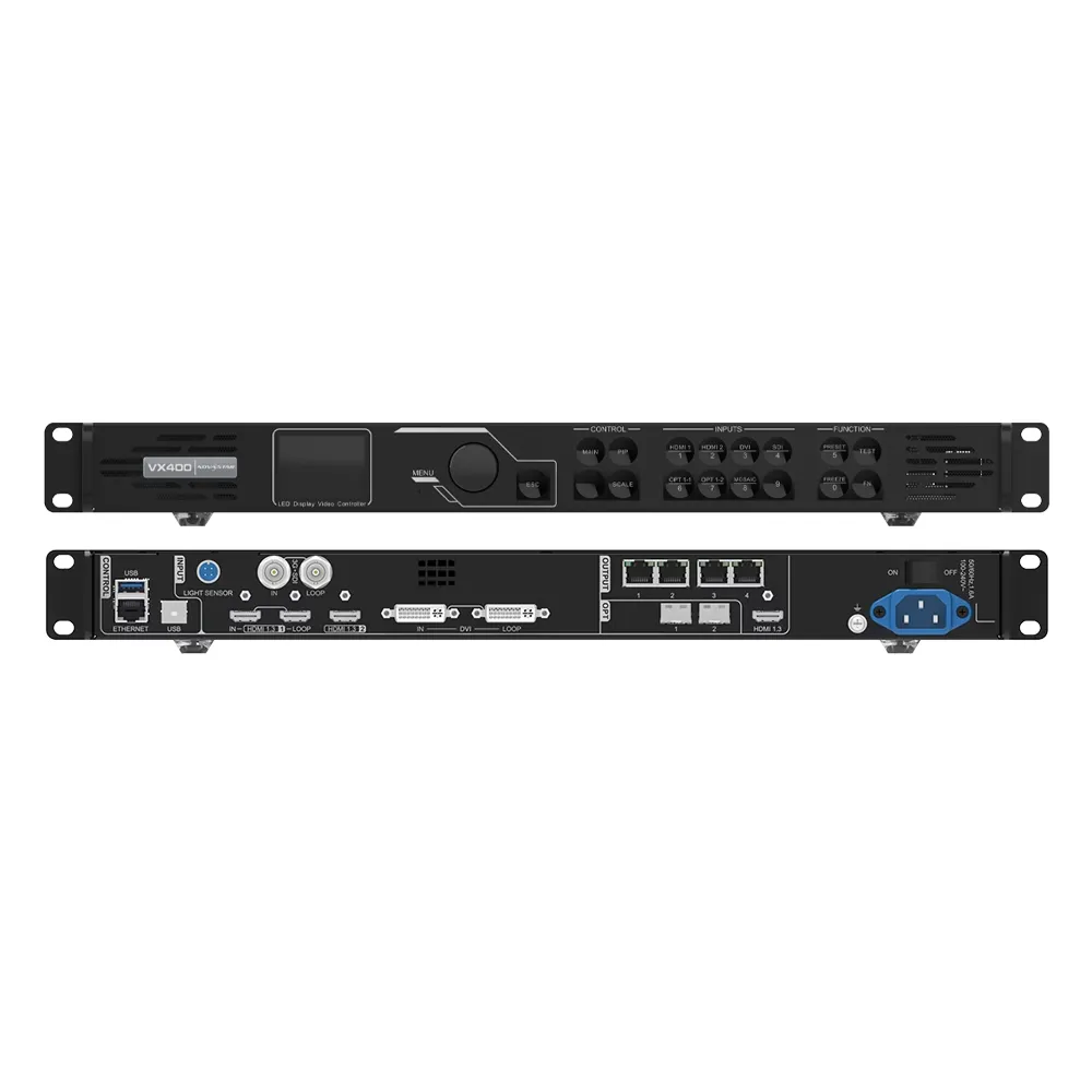 VX400 de Novastar es un procesador de video led para pantallas LED. Video Processor. Diseñado para operación estable en instalaciones fijas y eventos.